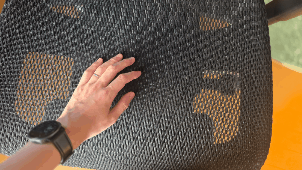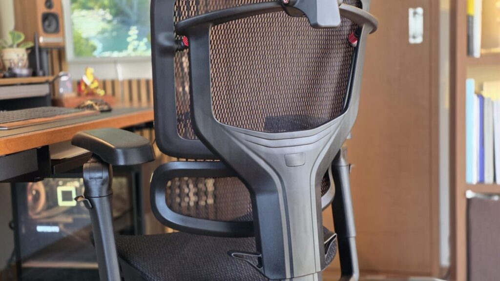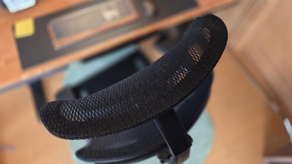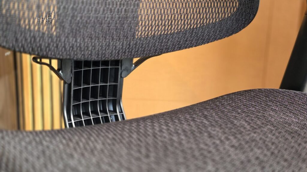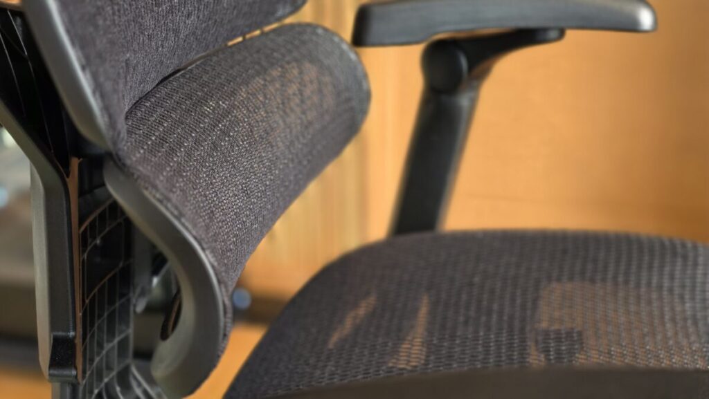 実際に座ってみると、まず感じるのはメッシュの「ハリ」のバランスの良さ。適度に張りがあることで、体が沈み込みすぎず、自然と正しい姿勢をキープしやすい作りになっています。