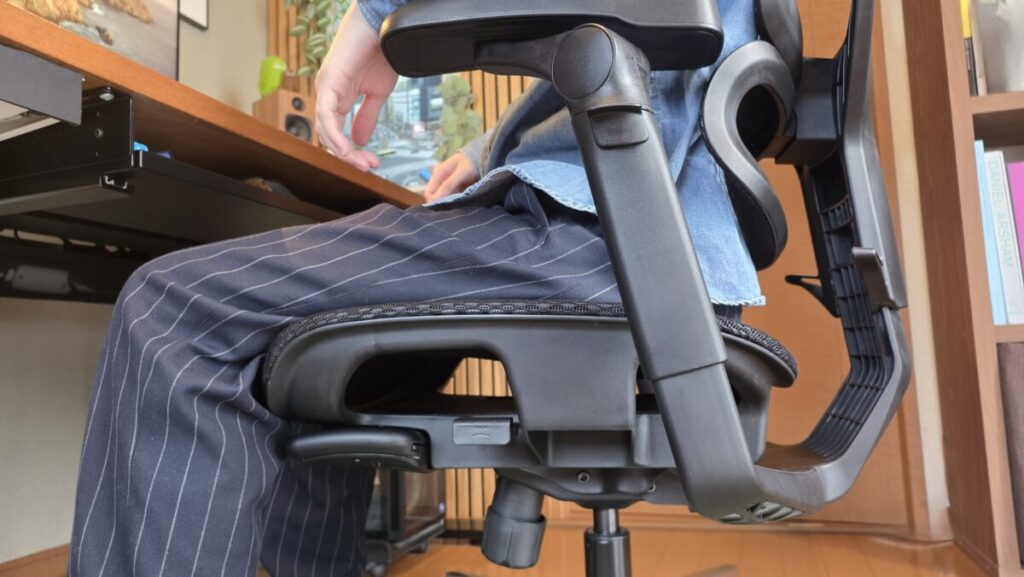 サイズ感についても、日本人の体型に合いやすい印象。座面や背もたれが過度に大きすぎないため、体がしっかりホールドされ、姿勢が安定しやすいです。