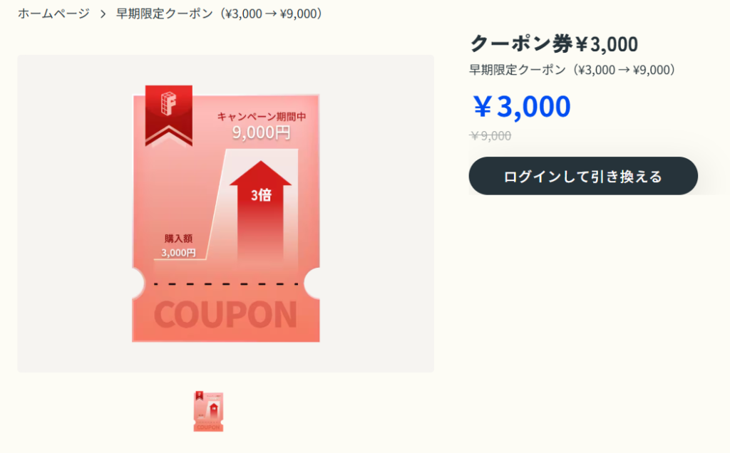 新生活応援キャンペーン中は、購入額の3倍の額で使える早期クーポンを購入することが可能。