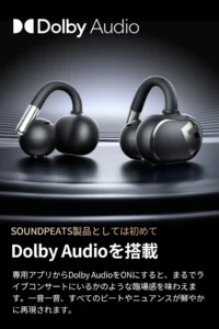 SOUNDPEATS Clip1はDolby Audioにも対応しており、対応機器と組み合わせることで音の広がりや立体感がしっかり感じられます。イヤーカフ型という特性上、正直そこまでの臨場感は期待していませんでしたが、実際に使ってみると想像以上でした。