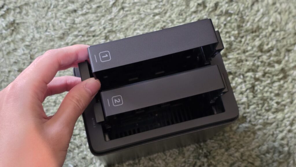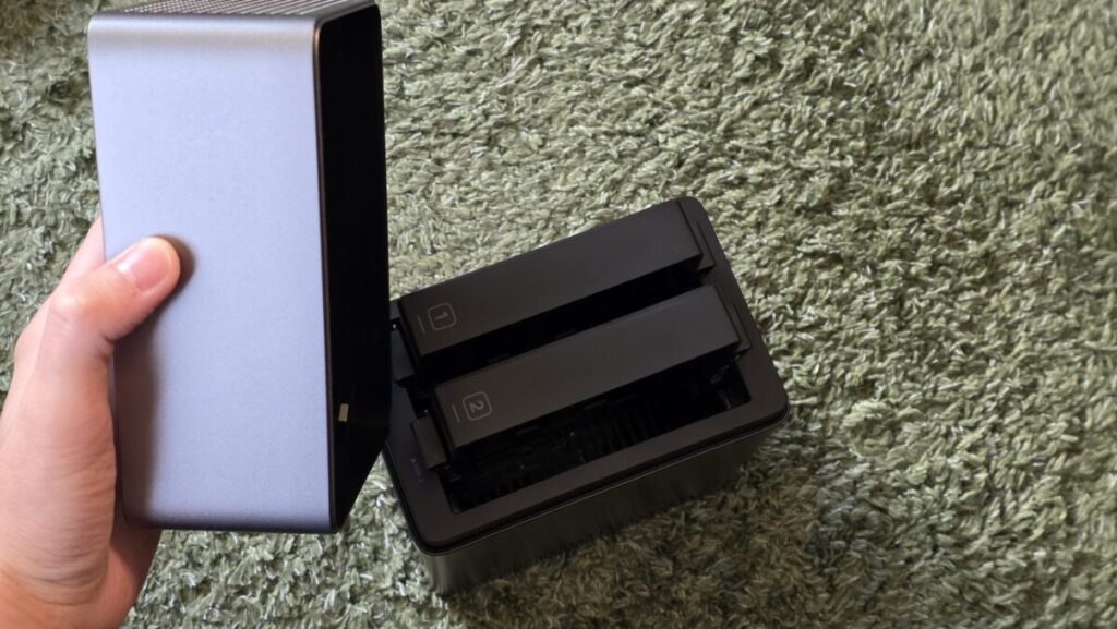 日々の管理が楽な一方で、ふと持ち上げた時に落とさないよう注意が必要な点は気になりました。一度HDDをセットしてしまえば頻繁に開くものでもないので、もうちょっとしっかり固定出来ても良かったのかなと思います。