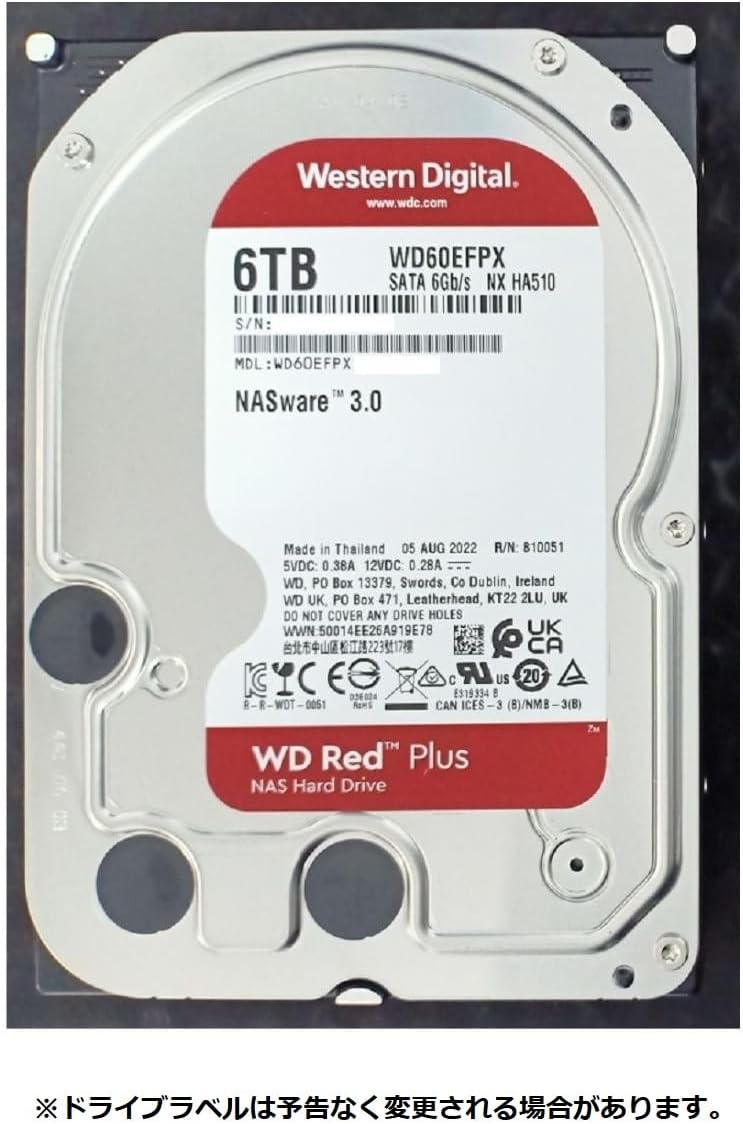 NAS用の定番ドライブ。静音性と安定性が両立していて、家庭用のNASには最適です。今回のレビューで使用したHDDもこちらのもの。
