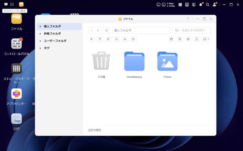 こういった細かい挙動まで含めて、「自宅に置いているNAS」というより、かなり完成度の高い個人用クラウドサービスを使っている感覚に近く、ストレスなく利用できました。