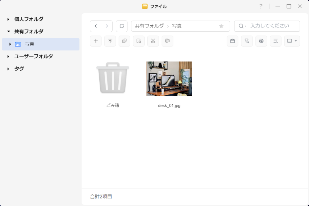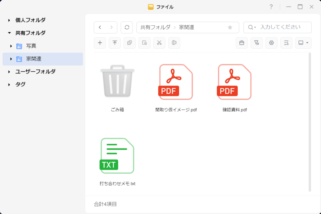 「個人用」と「共有用」を明確に分けて管理できるのは想像以上に便利で、バックアップ用・家族での共有用など用途ごとにフォルダを作り分けられるのは利点だと思います。