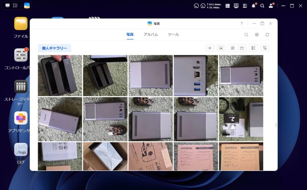 少なくともWindowsやMacなどのコンピュータを操作したことがある方なら困ることはほぼ無く、すぐにファイルの共有をスタートできると思います。まるでPCにような操作感です。この操作の分かりやすさはUGREENのNASならではだと思いました。